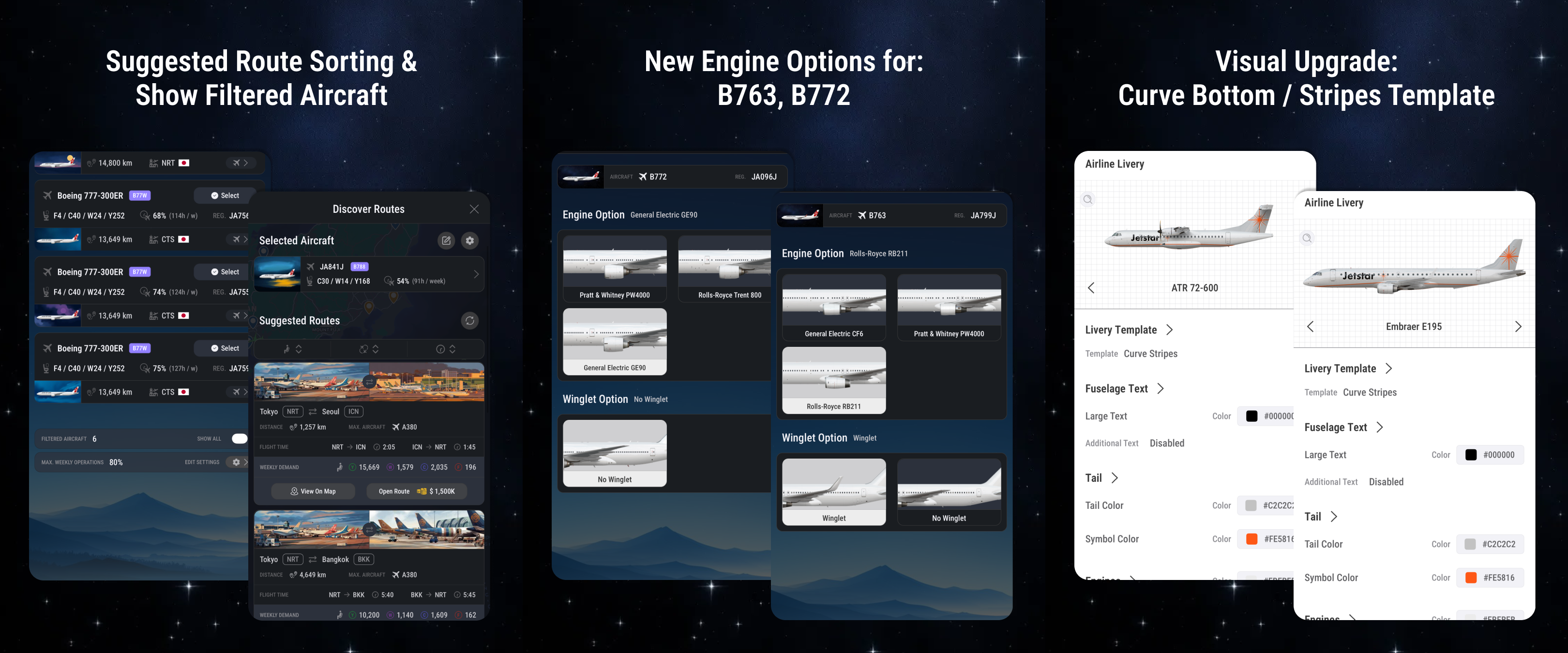 •Players can now sort suggested routes based on flight time, available demand, and total flight duration