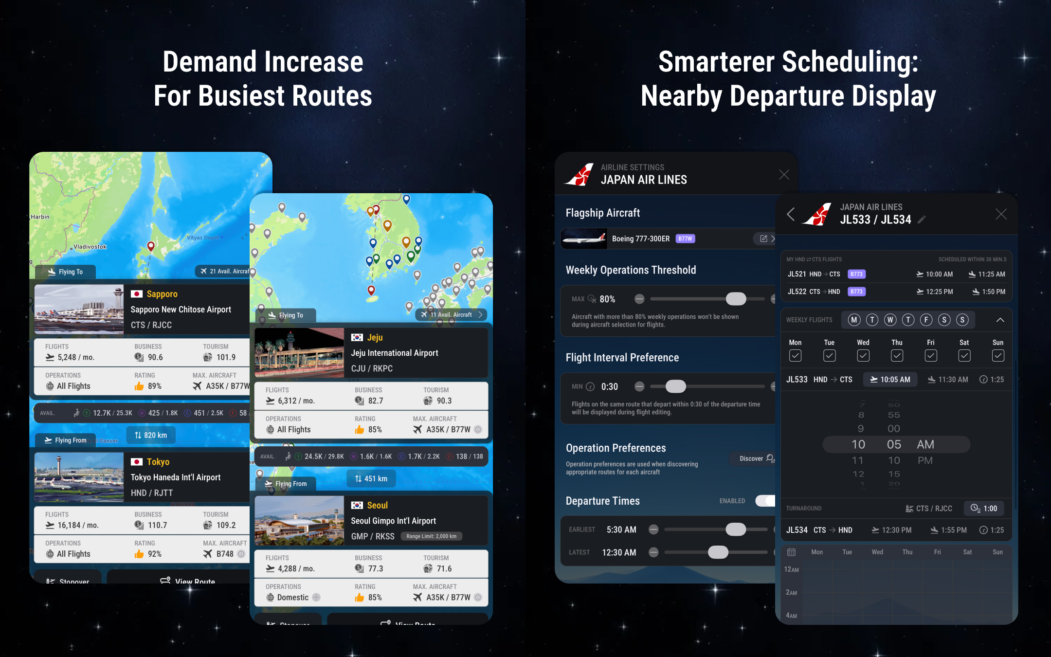 •Route demand has been increased for the world's busiest routes, including GMP-CJU, HND-CTS, JED-RUH, and more